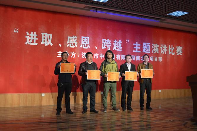 2016年3月26號下午一點,由濟南市中控股有限公司主辦的“感恩、進取、跨越”演講比賽在濟南大學第二學術報告廳舉行,濟南市中控股有限公司副總經(jīng)理孫澤寶、李毅德及各參建單位的分管領導一同參觀了此次活動。經(jīng)過四個小時的激烈角逐,我公司代表孫盛楠、劉鳳磊、孫曉紅榮獲個人一等獎,不僅為個人贏得了榮譽,也為公司增光添彩。